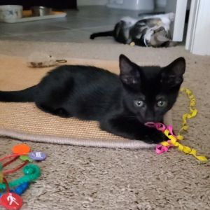 . We have 4 adorable beautiful bombay kitties 65 months old ready for adoption. The Bombay cat is a short-haired breed created to resemble the black leopards in India. Bombay cats are completely black including their nose and paws and display very little paling.